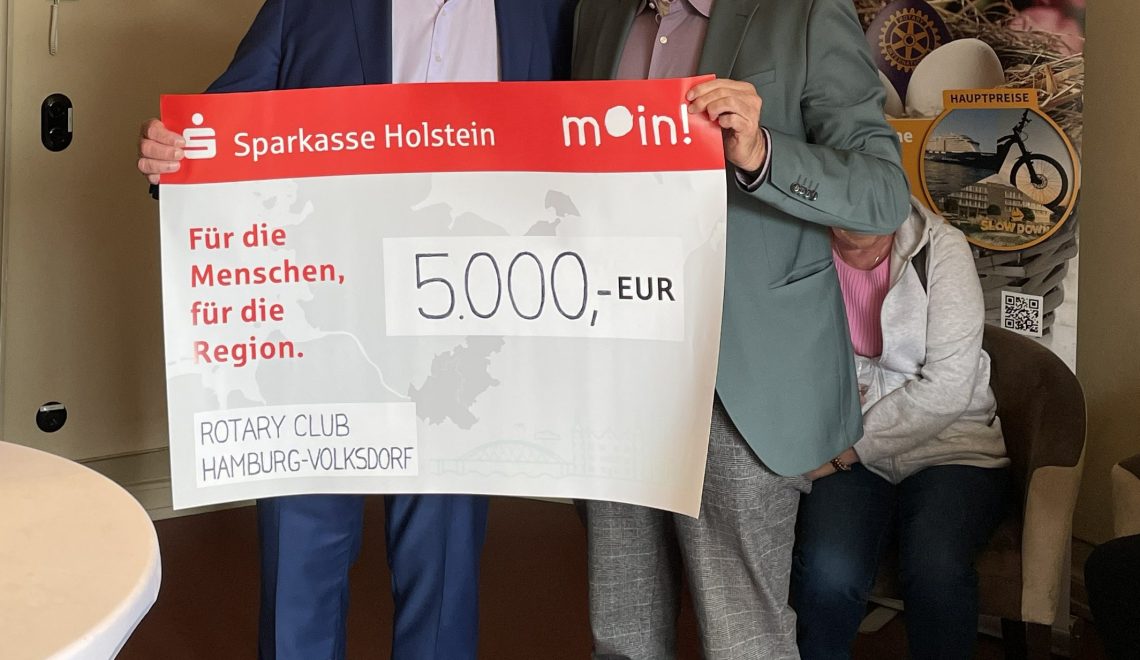 Mit großem Engagement und vielen fleißigen Helfern hat der Rotary Club Hamburg-Volksdorf € 20.000 für gemeinnützige Institutionen in Volksdorf mit einer Glück-Osterei-Aktion erzielt. Der Vorsitzende des Vorstands der Stiftung, Dr. Karl-Heinz Belser, der den Scheck über 5.000 entgegennehmen durfte, dankte für das Engagement der Rotarier für den Stadtteil.